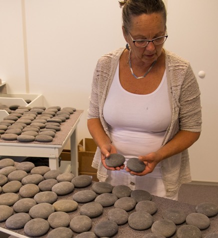 Natuurlijke stenen zijn boller zijn dan de fabrieksmatig gemaakte platte stenen. Daardoor gaan ze dieper tijdens de massage. Platte stenen gaan als strijkbouten over de huid. ·